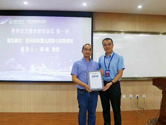 报告结束后,304永利集团官网执行经理刘彦明代表学院和陕西省空间超限探测重点实验室,向周峰颁发了论坛报告荣誉证书,并对周峰的精彩报告表示感谢。论坛在师生们热烈的掌声中落下帷幕。