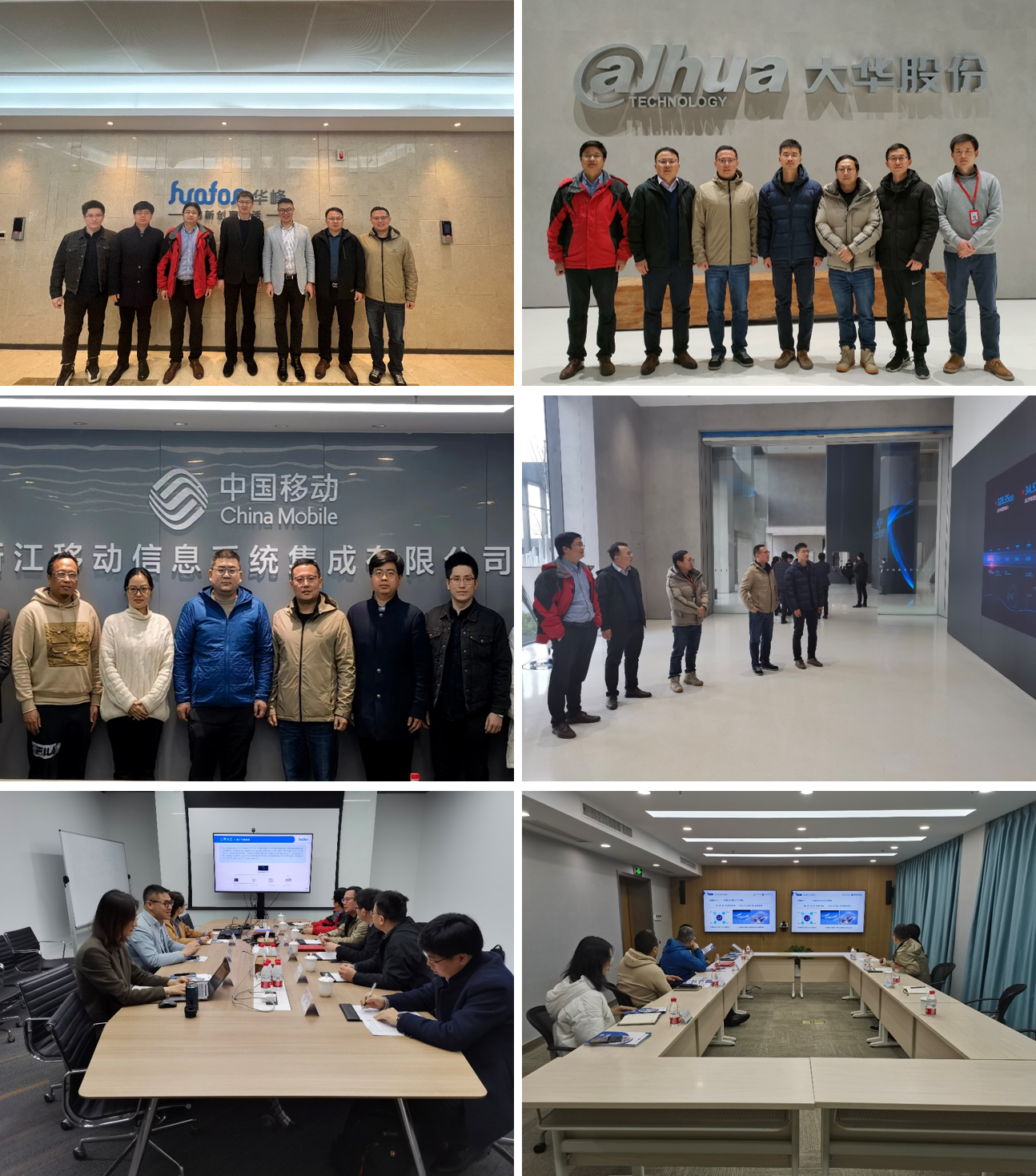 在浙江大华技术股份有限公司,学院一行先后参观了创新技术展厅、应用产品中心、中央研究院、硬件研发基地,对企业科技创新、产品布局、技术攻关和生产研发等情况进行了深入了解,并与企业重点对接了用人需求和招聘计划。