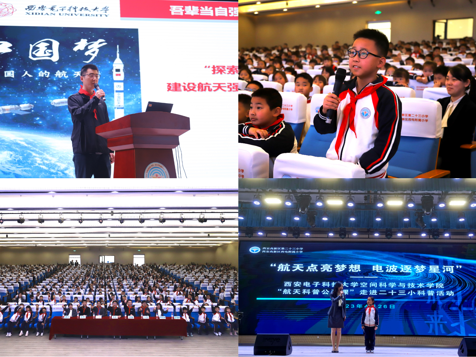 4月26日,304永利集团官网测控通信系教职工党支部青年委员徐晗走进西安高新区第二十三小学,带来了妙趣横生的航天科普公开课《童心筑梦 志在成长—我与航天共成长》,为近700名“小电波”们普及航天知识,播种逐梦苍穹的“种子”。
