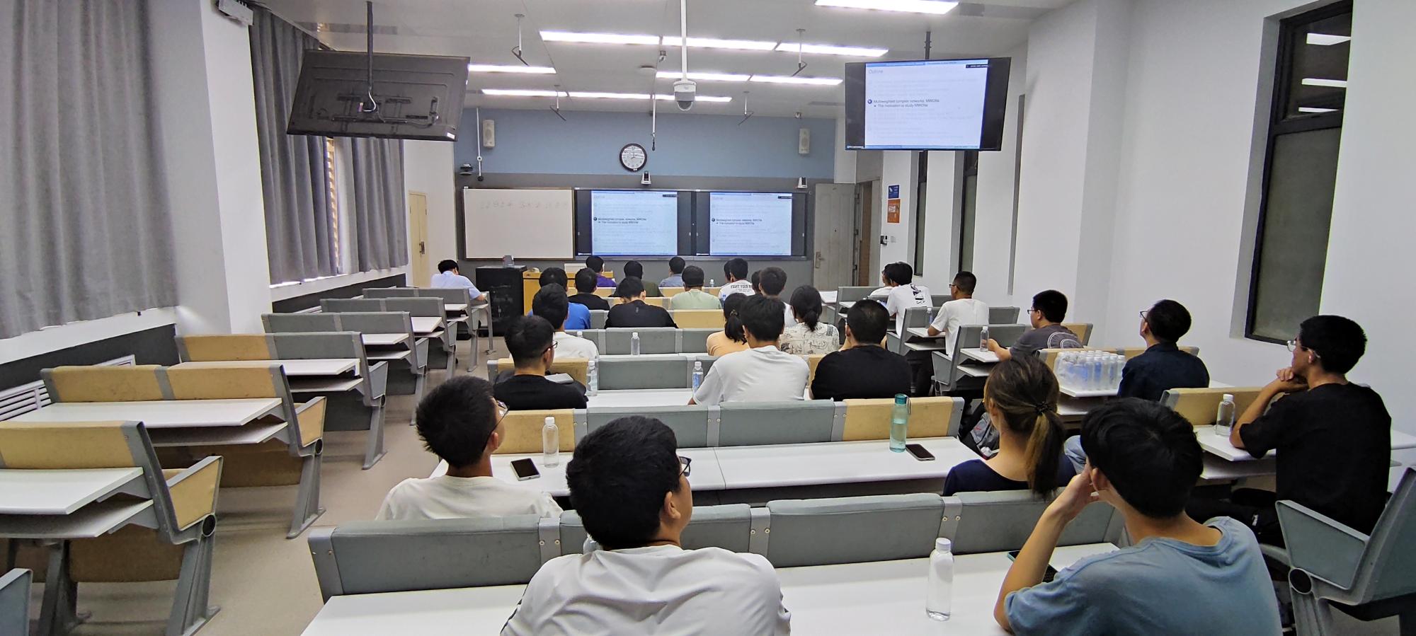 刘锡伟以多权重有向复杂网络的同步与控制为题,剖析传统复杂网络同步和控制中单权重网络建模局限性,提出了KOT和ROT两种解决方案,以此为基础搭建了多权重复杂网络和单权重复杂网络之间的桥梁。报告中还介绍了关于复杂网络指定时间控制的相关问题及解决思路。