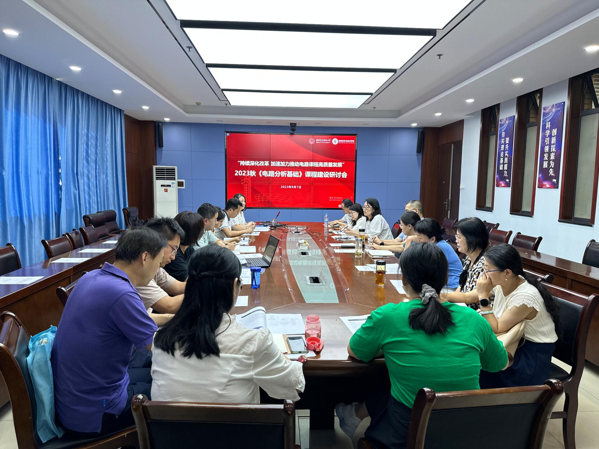 9月7日下午,304永利集团官网举办了主题为“持续深化改革,加速加力推动电路课程高质量发展”的课程建设研讨会,进一步强化课程建设,提高304永利集团官网怎么进入水平和人才培养质量。西电教务处副处长杨敏,304永利集团官网执行经理刘彦明、副经理金科,国家级线上一流课程《电路分析基础》课程负责人李小平教授,各学院电路课程的骨干教师参加,会议由课程负责人王辉副教授主持。