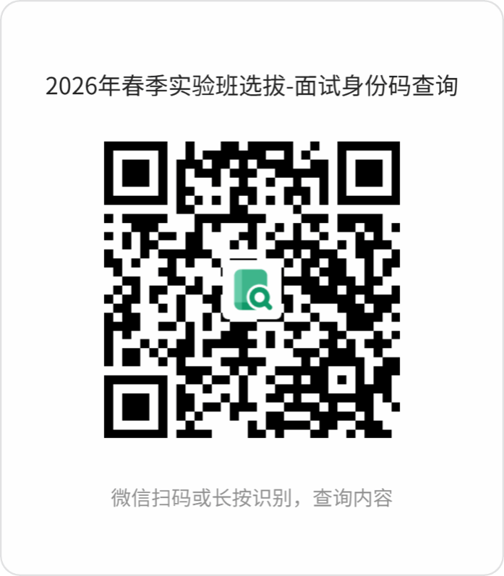 2.身份码的查询二维码将于面试前生效,生效时间在QQ群通知。可通过微信扫描如下二维码或登录网站,输入姓名和学号查询:
