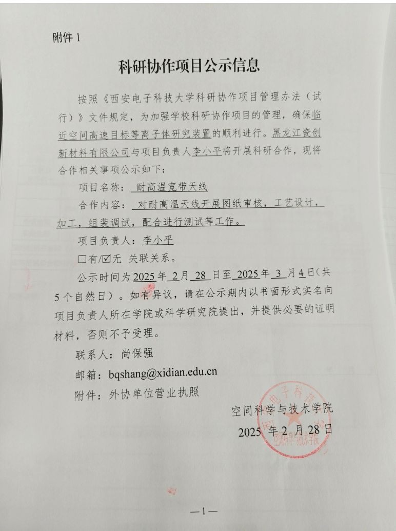 科研协作项目公示信息